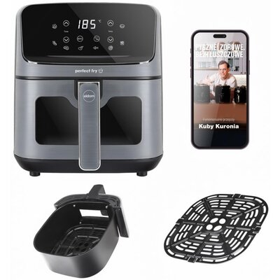 | Funkcje dodatkowe | Koszyk na frytki z ergonomiczną składaną raczką, Lampka kontrolna, Możliwość zawieszenia kosza nad poziomem oleju, Płynna regulacja temperatury, Przycisk otwierania pokrywy, Zdejmowana pokrywa |